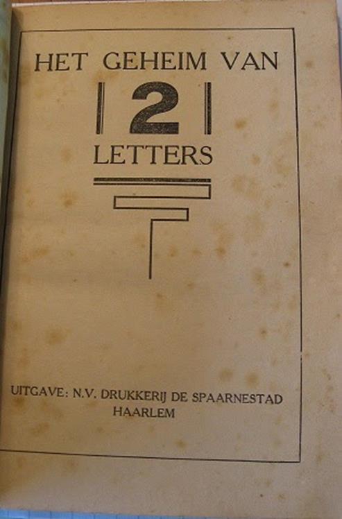 Van Frank Zwart hebben we foto’s en info ontvangen waaruit blijkt dat dit boek onder de titel "Het geheim van twee letters" is uitgegeven door uitgeverij De Spaarnestad.